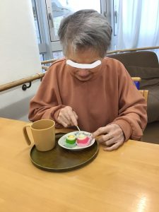 かわいい♡ 美味しい♡ に口元もほころんでおられますね。