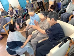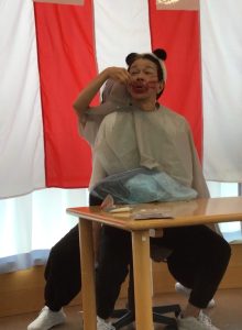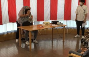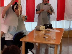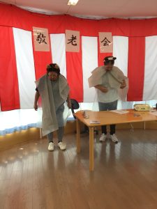職員による出し物 二人羽織 を楽しんでいただきました。